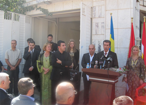 Klockan 9.30 dundrar avdelningen för anordnandet av invigningar in. Säkerhetspolisen är redan på plats och kvarteret runt skolan avspärrat. Kostymkädd dam sköter med van hand hela ruljansen. En barnkör dyker upp från intet, orkester, mikrofoner, talarstol, tre prydliga fanor; den kurdiska, svenska och irakiska.
